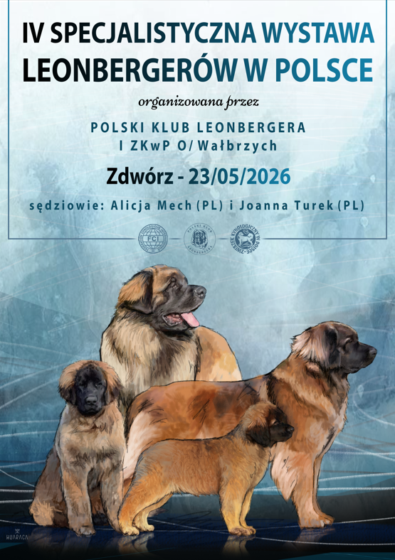 Poola Leonbergerite Klubi kutsub kõiki osalema leonbergerite erinäitusel, mis toimub 23. mail Poolas, Zdwórz’is.